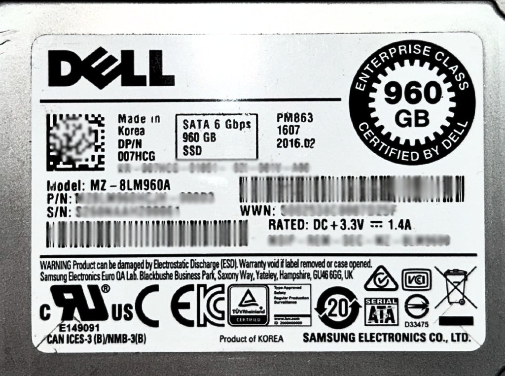 Dell 07HCG 960GB SSD SATA 1.8' 6G RI MZ8LM960HCJH-000D3 / MZ-8LM960A
