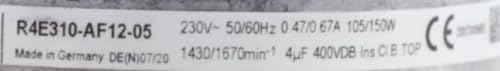 for R4E310-AF12-05 230V 0.47/0.67A 105/150W 1430/1670RPM Cooling Fan