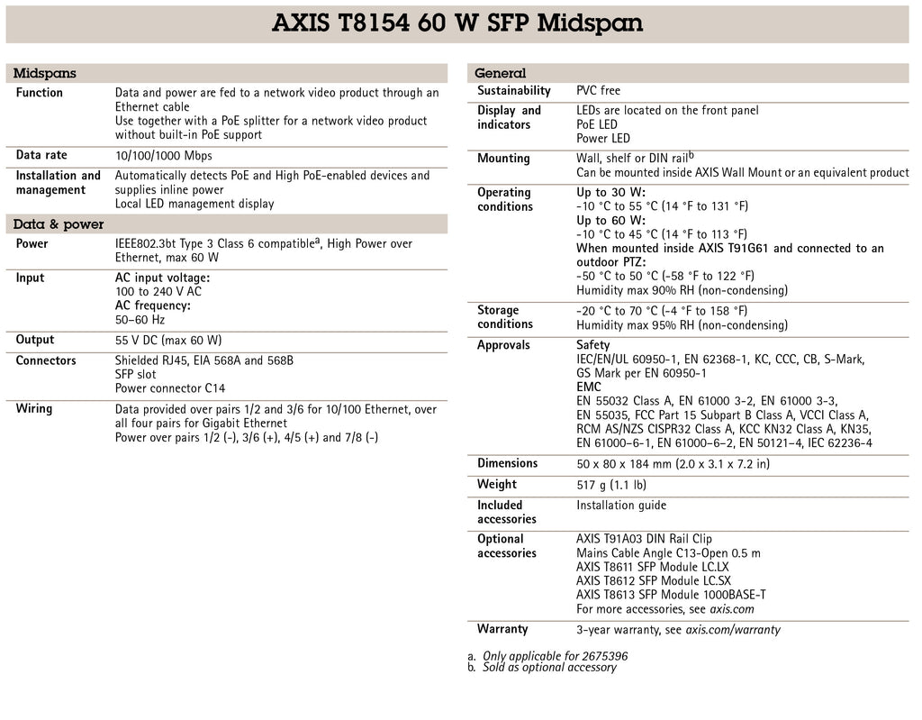 AXIS T8154 60W SFP Midspan