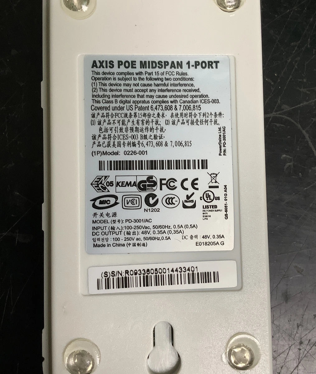 AXIS Communications POE Midspan 1-Port Model 0226-001 | No Power Supply