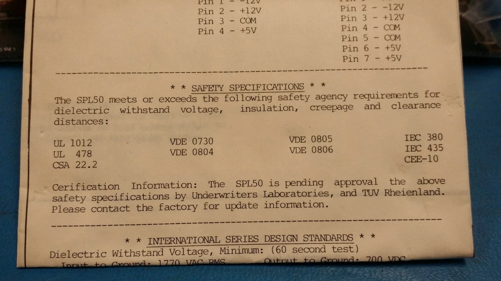 (1 PC) SPL50-3200 POWER-ONE Multi Voltage Switching Power Supply, 50W ,5V to 12V